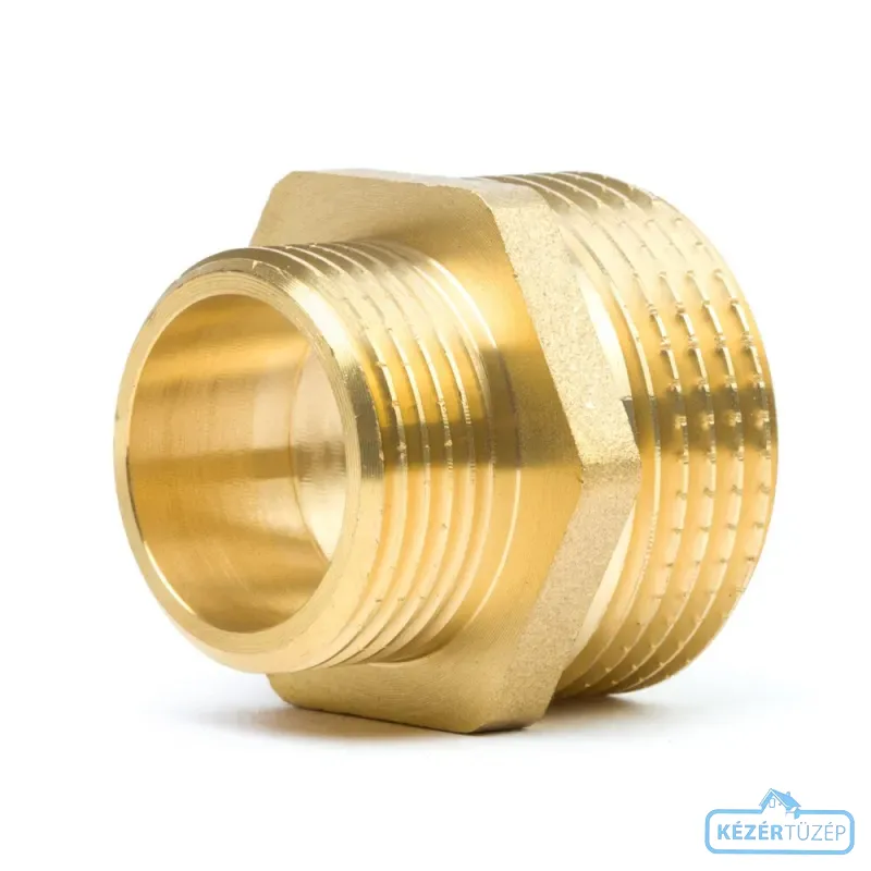 Réz Fitting, réz menetes szűkítő közcsavar (két különböző col méretű külső menet, KM) segítségével két eltérő col-méretű belső menetes (BM) idomot csatlakoztathatunk egymáshoz.