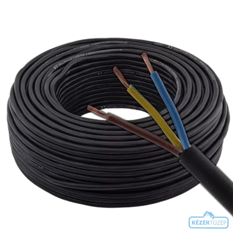 A H05RR-F jelű, 300/500 V névleges feszültségű, 3 × 1,5 mm² finomsodrott réz¬vezetős gumikábeleket hordozható háztartási gépekhez, kéziszerszámokhoz és könnyű ipari eszközökhöz tervezték. Az EPR-gumi szigetelés és köpeny nagyfokú rugalmasságot, jó olaj-, ózon- és UV-állóságot biztosít, ezért beltérben, illetve mérsékelt igénybevételű, ideiglenes kültéri alkalmazásoknál is megbízhatóan használható.